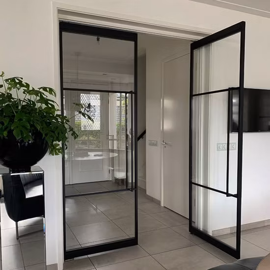Estética técnica y minimalista: Perfiles de vista reducida (desde 22mm) que ofrecen una estética industrial y moderna, maximizando la entrada de luz natural y la sensación de amplitud.