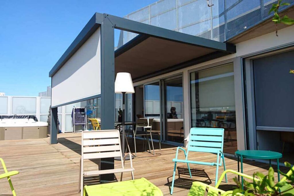 Personaliza tu pérgola de lona tensada en Madrid con cortinas de cristal y complementos exclusivos