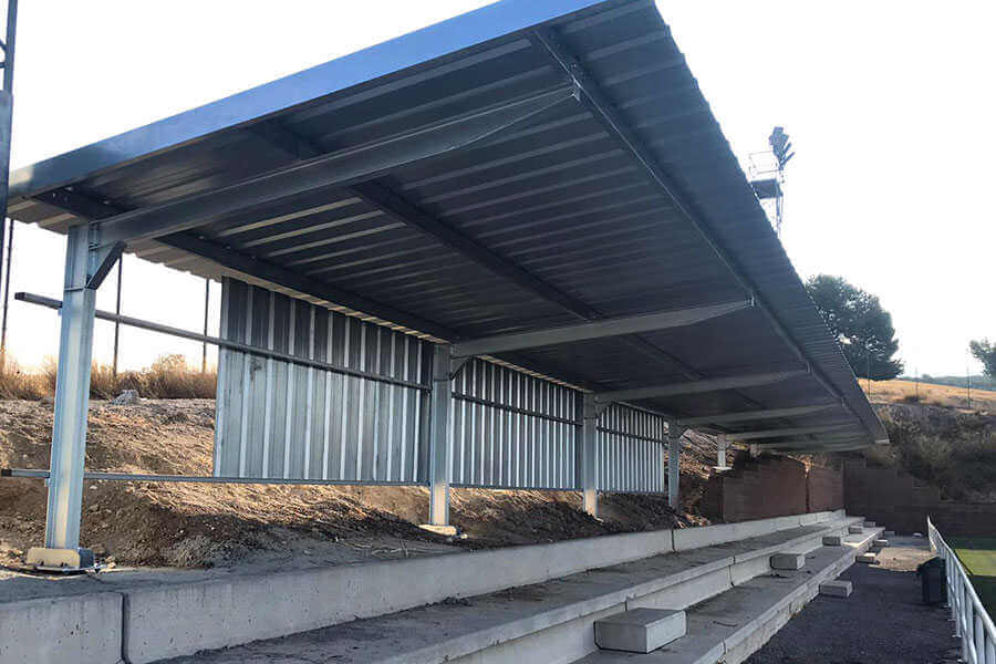 Principalmente acero, hierro o aluminio para la estructura, y panel sándwich, chapa o policarbonato para la cubierta.