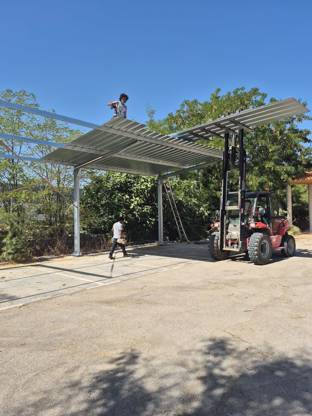 En Cerrarte nos especializamos en la fabricación e instalación de marquesinas de grandes dimensiones y alturas, ideales para la protección de autobuses, caravanas y vehículos de gran tamaño. Nuestro sistema, basado en vigas de alta resistencia (tanto IPE como de cajón), permite diseñar estructuras robustas y adaptadas a sus necesidades, incluyendo marquesinas a dos aguas para una mejor evacuación de agua y nieve